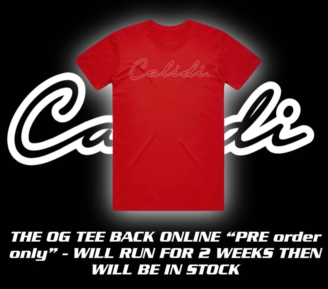 All GOTHIC “C - Hyper Pink and Fluro Green A$60.00 Mental health tee “ Tiffany Teal A$60.00 Burnouts & BOOBS A$60.00 Neon signature tee A$60.00 New Motorsport tee 2025 A$60.00 Graph Tee OG A$60.00 BBALL Jersey Tiffany&Pink A$80.00 5Panel Dryfit hat !! A$39.99 Calidi face mask A$9.95 CC STICKERS 60cm from A$10.00 Tiffany Teal / Signature tee A$60.00 Signature Cotton jogger pants “ Black & White Sale Price: A$30.00 Original Price: A$79.99 Sale C19 A$60.00 Kids Calidi crew / pink and teal Sale Price: A$30.00 Original Price: A$50.00 Sale CALI CREW / pink and teal Sale Price: A$40.00 Original Price: A$89.99 Sale CALI CREW / pink and teal from A$39.99 Sold out Signature Cotton jogger pants “ Pink” Sale Price: A$30.00 Original Price: A$79.99 Sale CALIDI beanie / one size fits most Sale Price: A$19.99 Original Price: A$39.99 Sale Adult Trucker hats !! 59cm A$50.00 Sold out CALIDI mid to high Socks.. 2 sizes ! A$15.00 Beach Shorts A$60.00 Beach Shorts A$60.00 CC red A$60.00 Calidi Skull Tee - Adults A$49.99 Teal Slides A$29.95 Black Slides A$29.95 CALIDI 60cm STICKERS from A$10.00 CALIDI SHOULDER BAG” stay strapped” A$39.99 Sold out TEAL HOODIE Sale Price: A$60.00 Original Price: A$120.00 Sold out CANARY YELLOW / Signature Calidi tee A$60.00 Calidi Charlotte Blue A$60.00 Calidi Neon Blue A$60.00 OG original Signature tee / Teal A$60.00 OG original Signature tee / black A$60.00 Cyan Blue Tee A$60.00 Atlantic HOOD from A$50.00 Sold out Navy EST 19 A$60.00 Citrus C tee A$60.00 Calidi B-BALL Singlet ( Yellow ) A$80.00 OG TEE - RED A$60.00 CALIDI MOTORSPORT TEE - PINK FADE A$60.00 Calidi Spray jacket A$40.00 Sold out WESTERN SYDNEY TEE - multiple colours A$60.00 CALIDI CARTEL A$60.00 Sold out Grey Signature Tee A$60.00 Neon Tee - Navy / Teal Logo A$60.00 Calidico. Tee Black A$60.00 Calidico. Tee Red A$60.00 Est19 Tee. Black A$60.00 Est19 Tee. White A$49.99 Est19 Tee. Tan from A$20.00 Sale